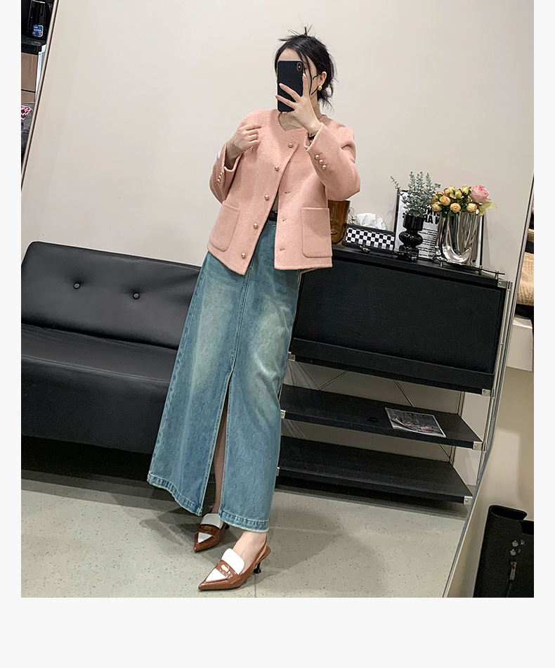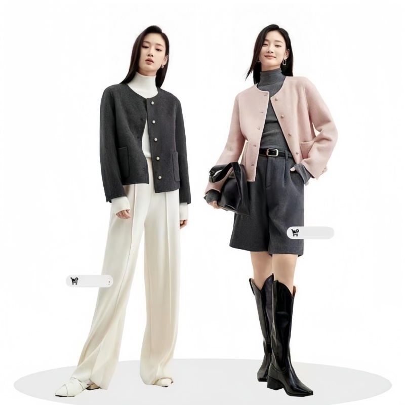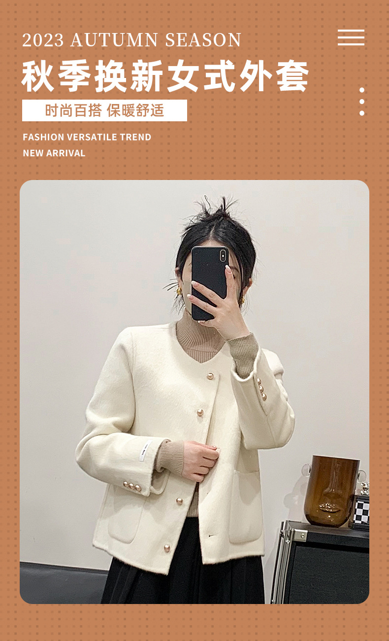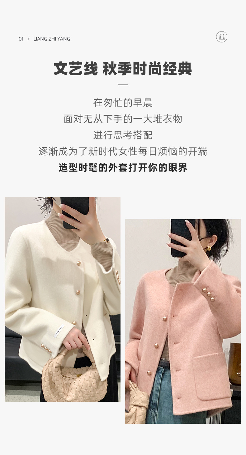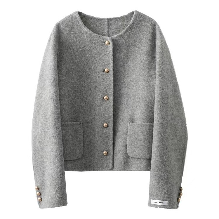 新款双面羊绒大衣女韩版短款圆领小个子毛呢纯色羊毛小香风外套