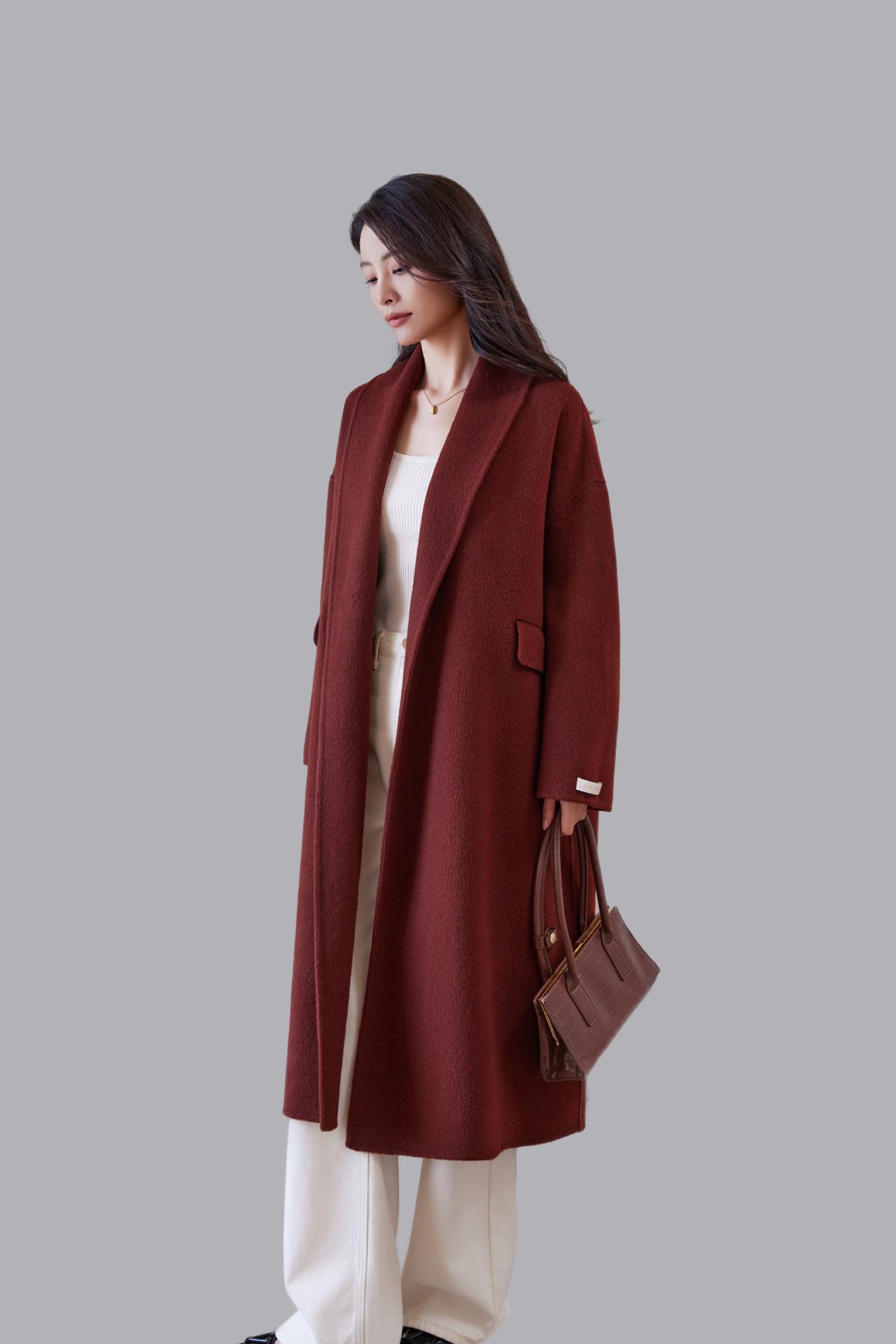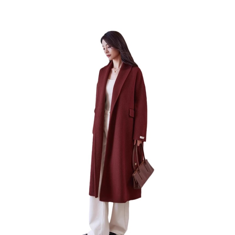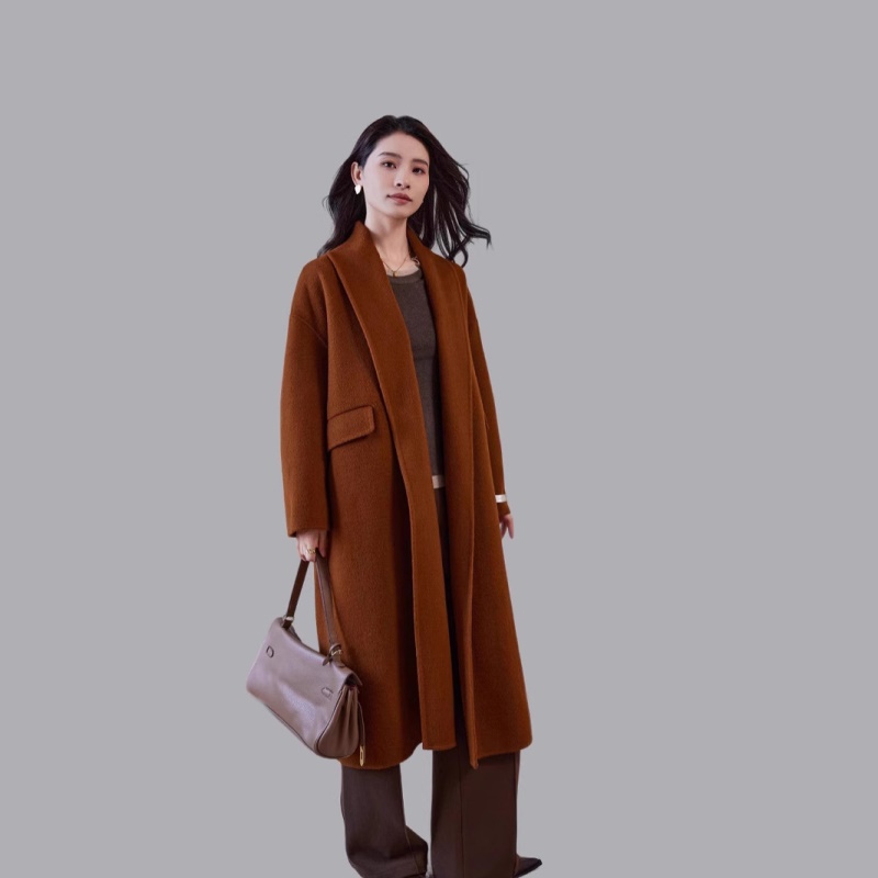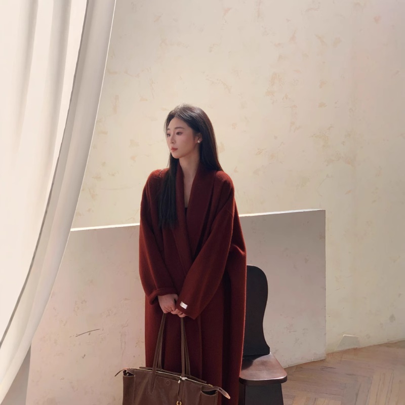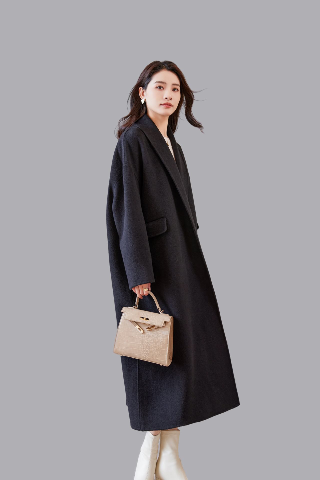 七七慵懒风宽松高级羊绒大衣纯羊毛毛呢外套轻奢个性百搭宽松显瘦