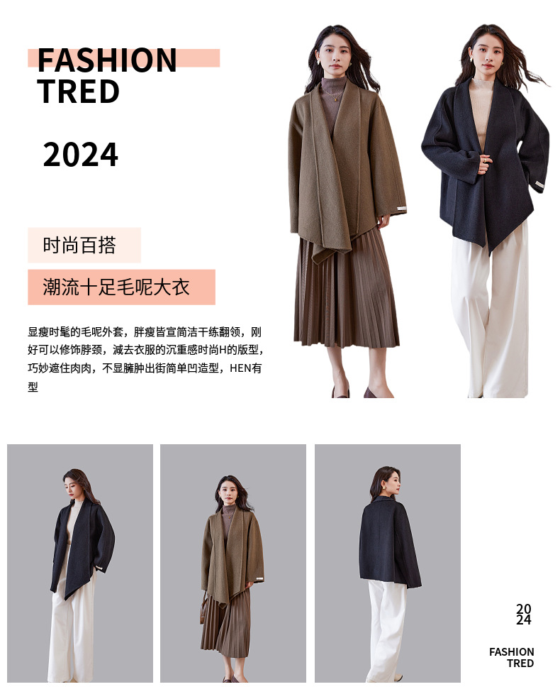 商品名称:欧洲站秋冬纯羊毛大衣双面羊绒高级感气质小香风毛呢呢子外套女