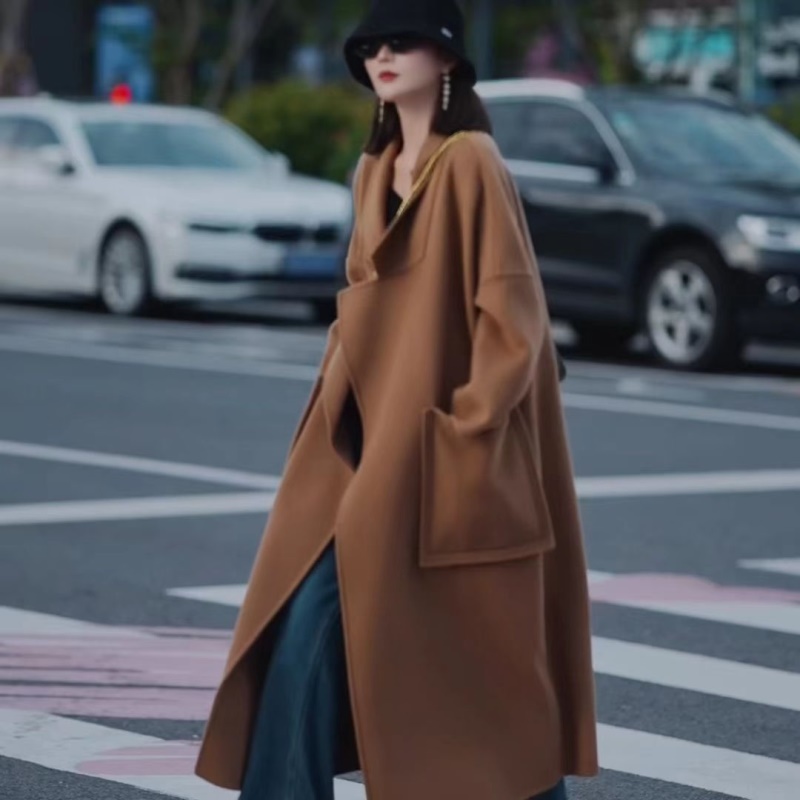 韩版羊毛大衣高级感气质穿搭休闲宽松慵懒风双面呢毛呢羊绒外套女