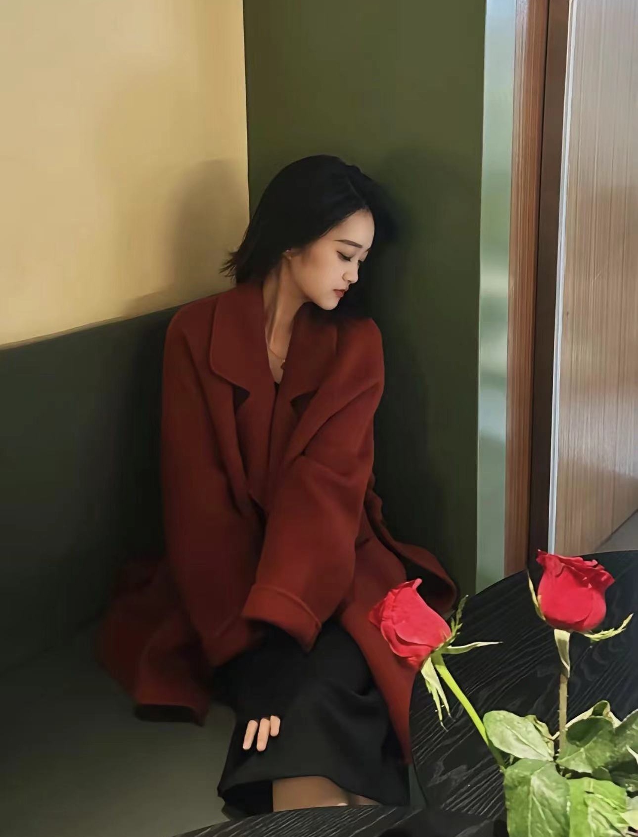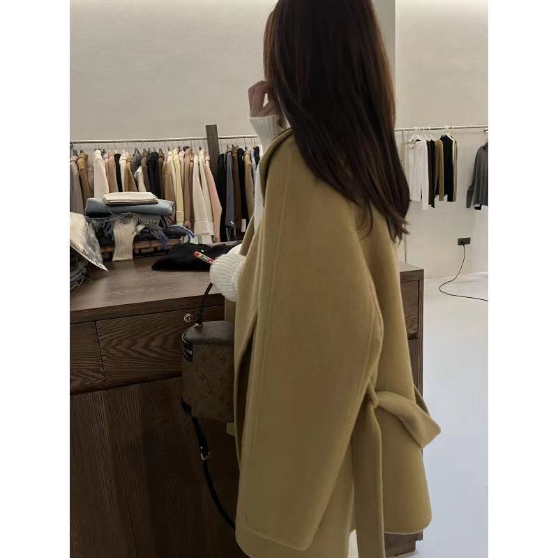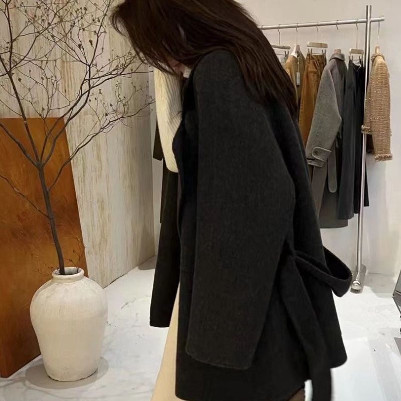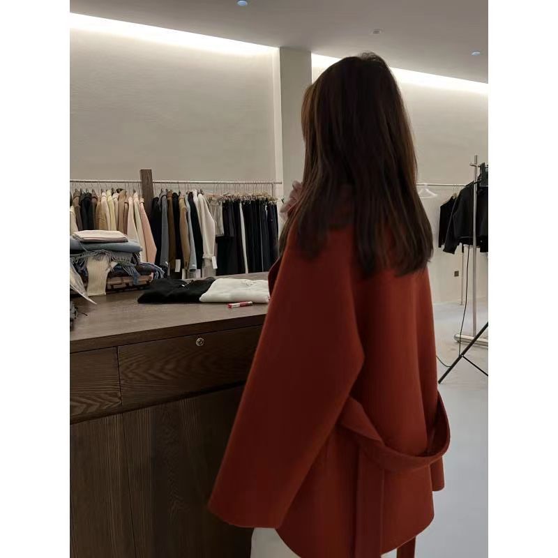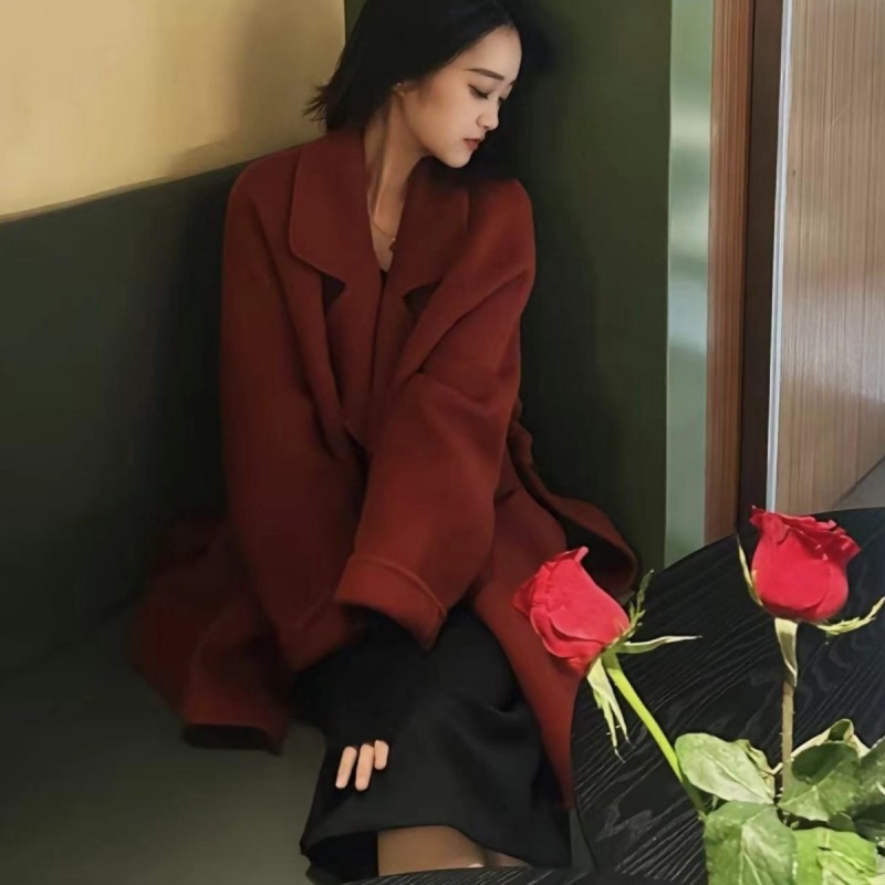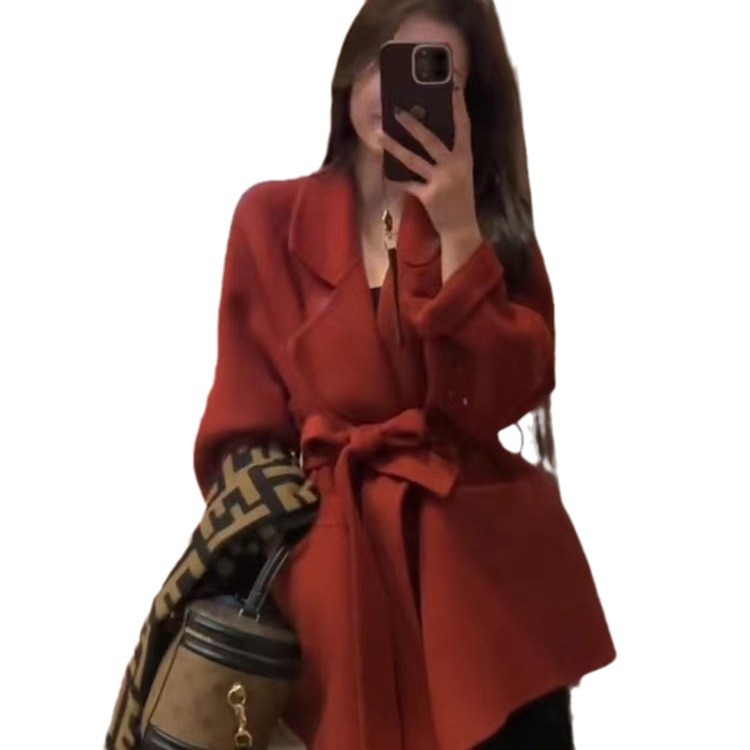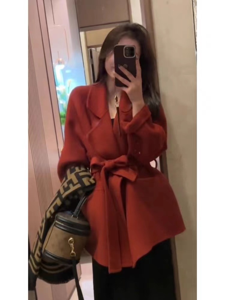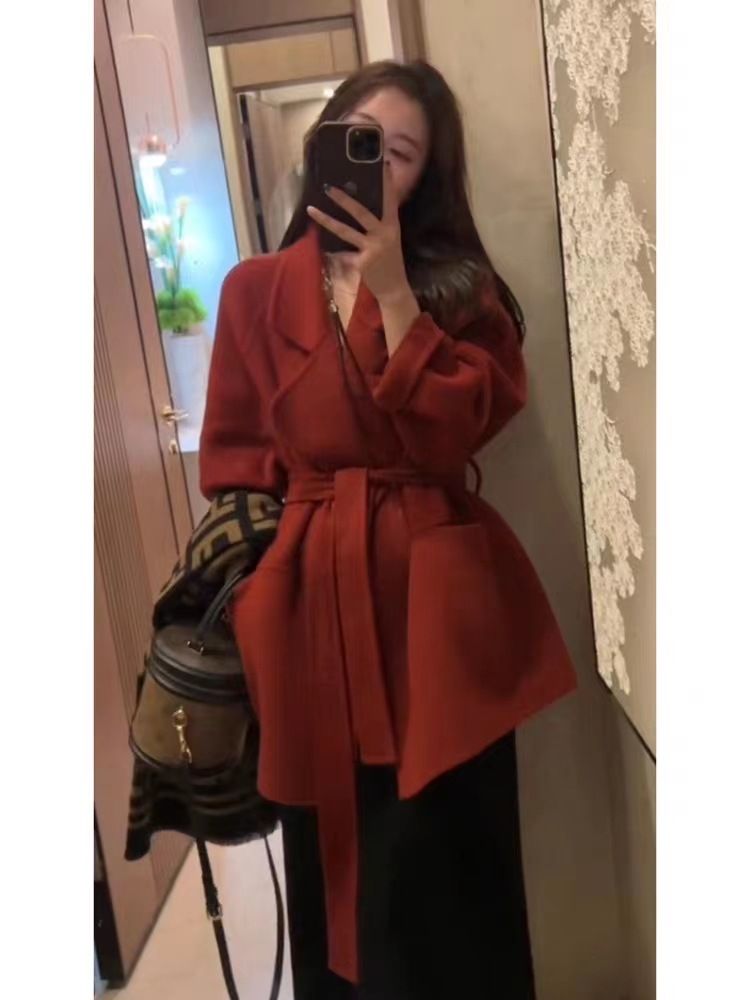 慵懒红色双面呢羊毛大衣西西里小个子羊绒高级感灰色毛呢外套短款