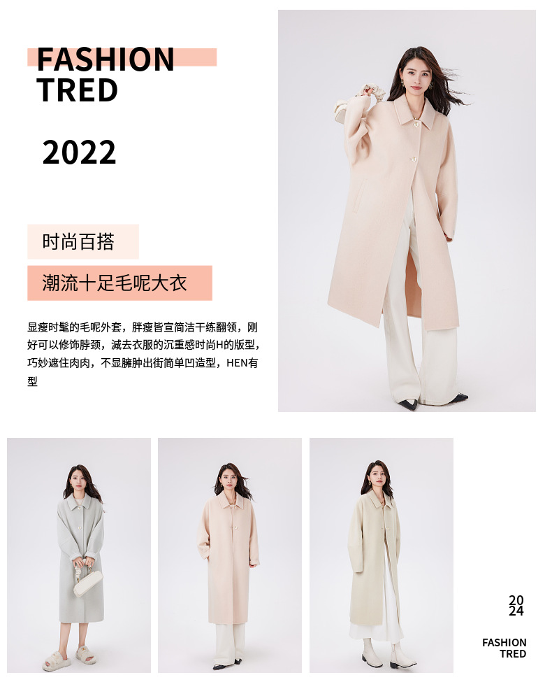 商品名称:冬季外套女纯羊毛大衣羊绒女双面毛呢小个子穿搭新款2024新款