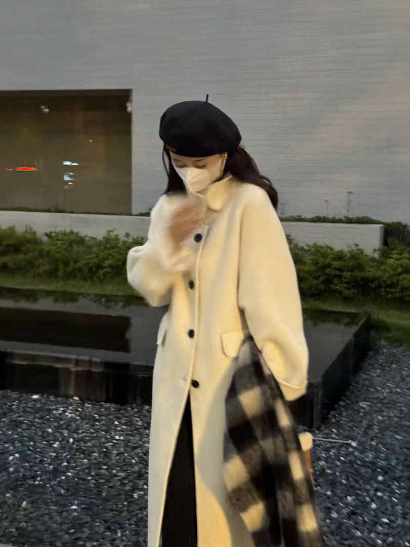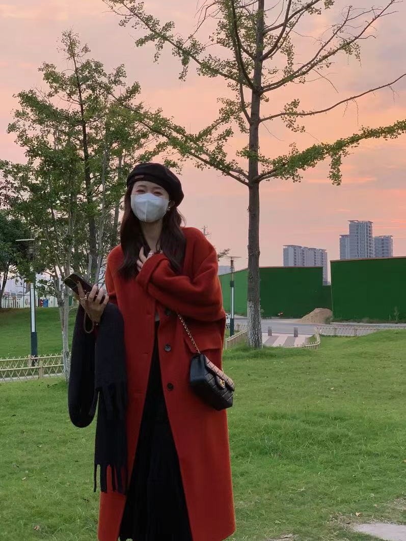 商品名称:秋冬慵懒红色羊毛大衣长款双面羊绒呢子毛呢外套女西西里厚实保暖