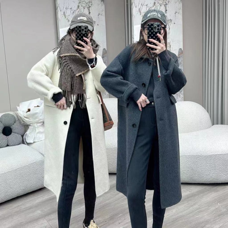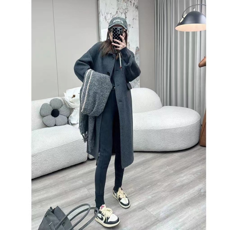 秋冬慵懒红色羊毛大衣长款双面羊绒呢子毛呢外套女西西里厚实保暖