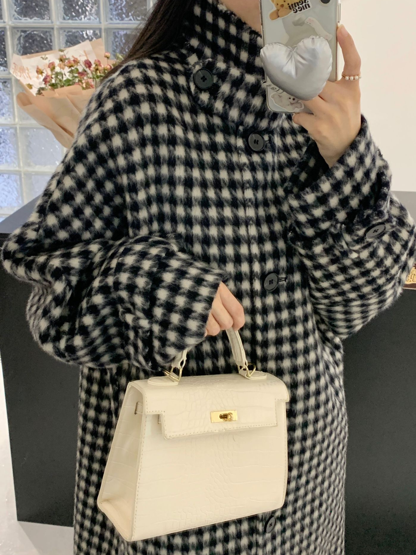 商品名称:长款千鸟格羊绒大衣双面韩系气质黑白格子羊毛-9990经典简约风