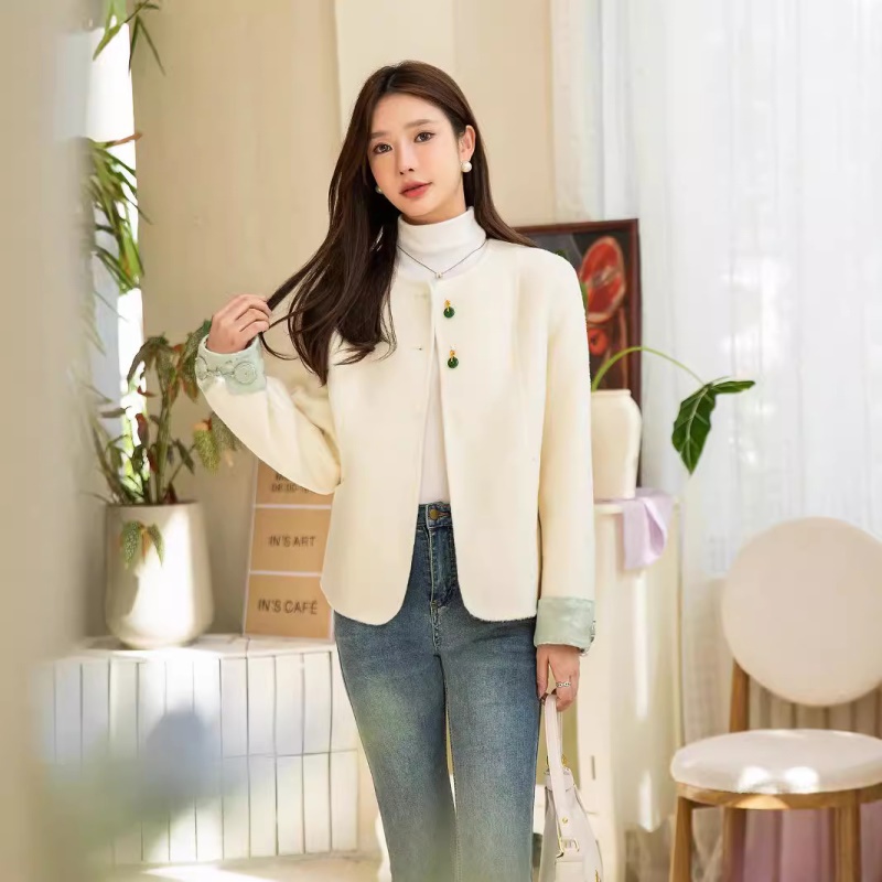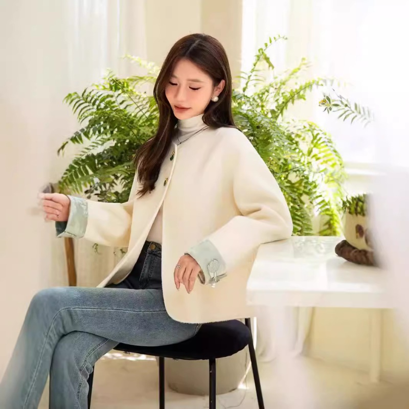 商品名称:中国风双面羊绒大衣小个子穿搭复古新中式羊毛毛呢外套女气质款