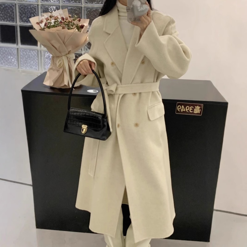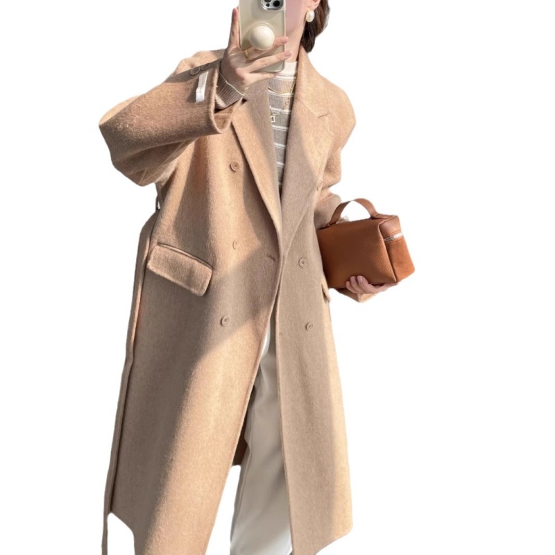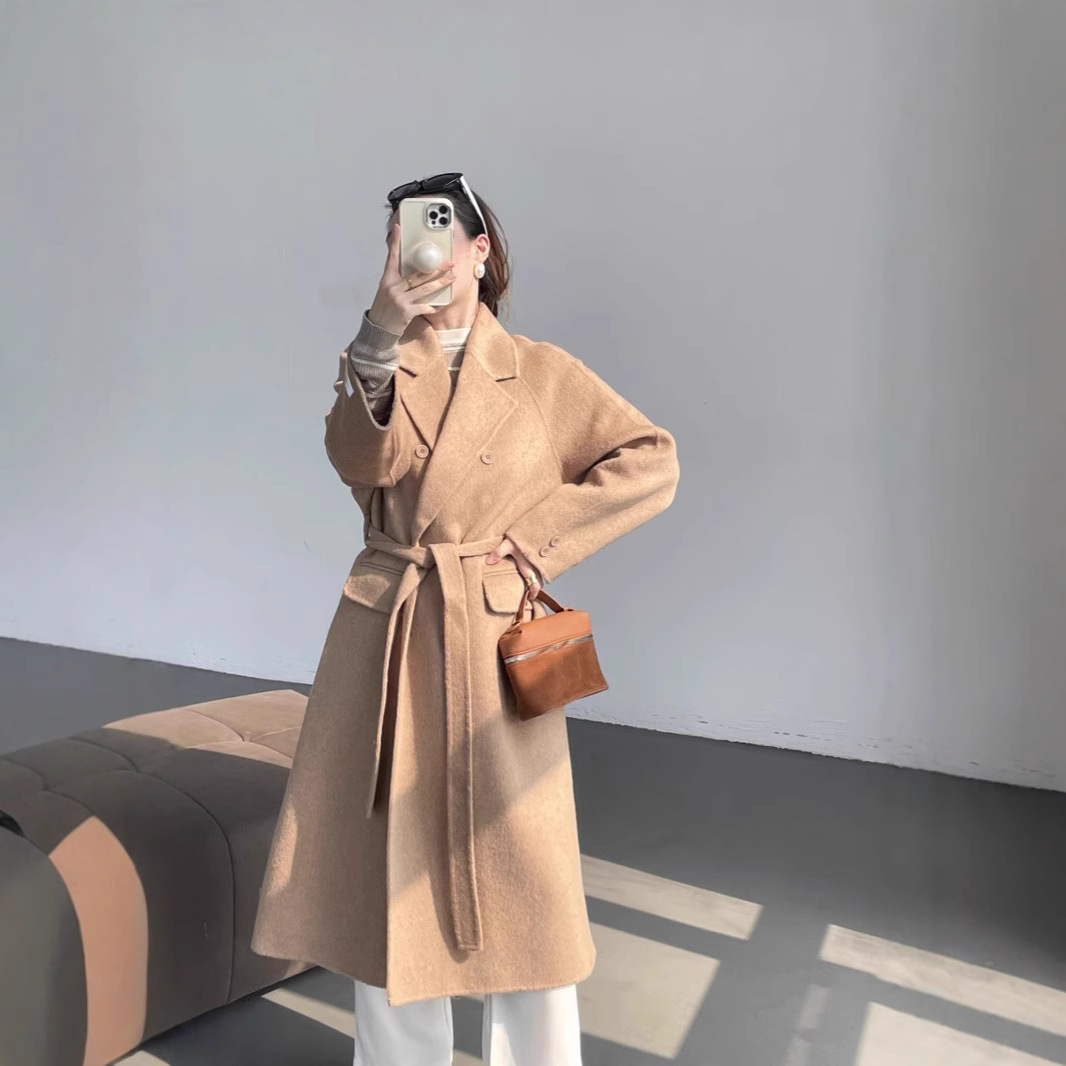 100羊毛法式上衣纯羊毛大衣毛呢外套女双排扣羊绒韩系昆山羊毛