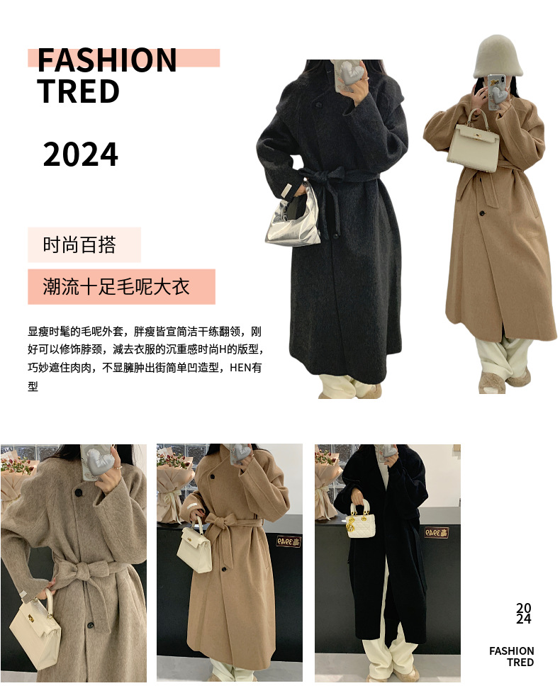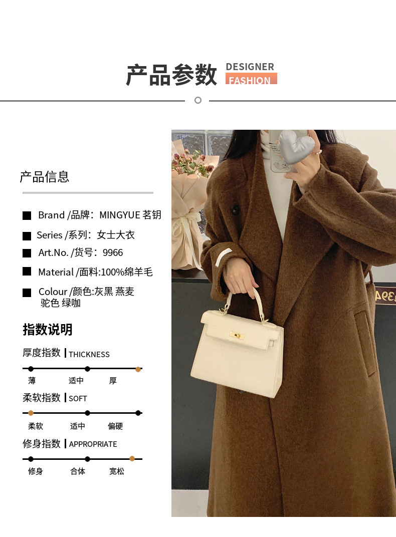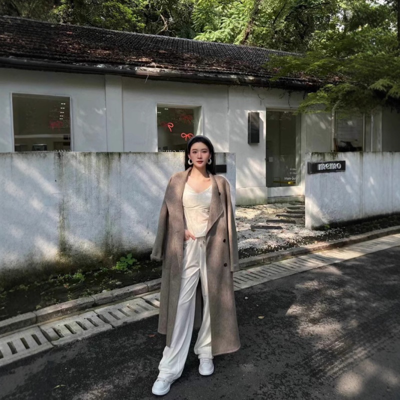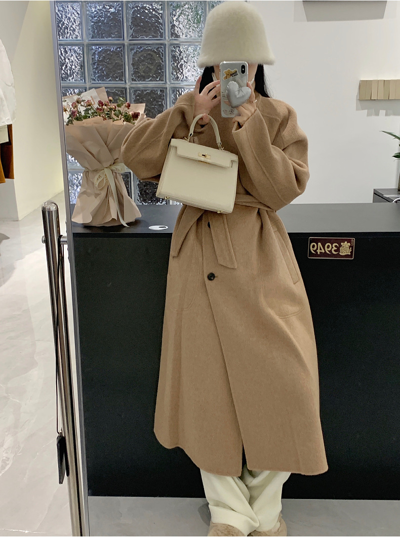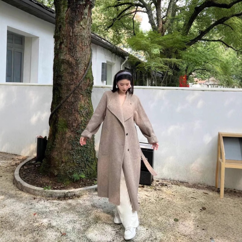 商品名称:长款初秋上衣100羊毛大衣羊绒女双面呢子毛呢外套2024新款宽松型