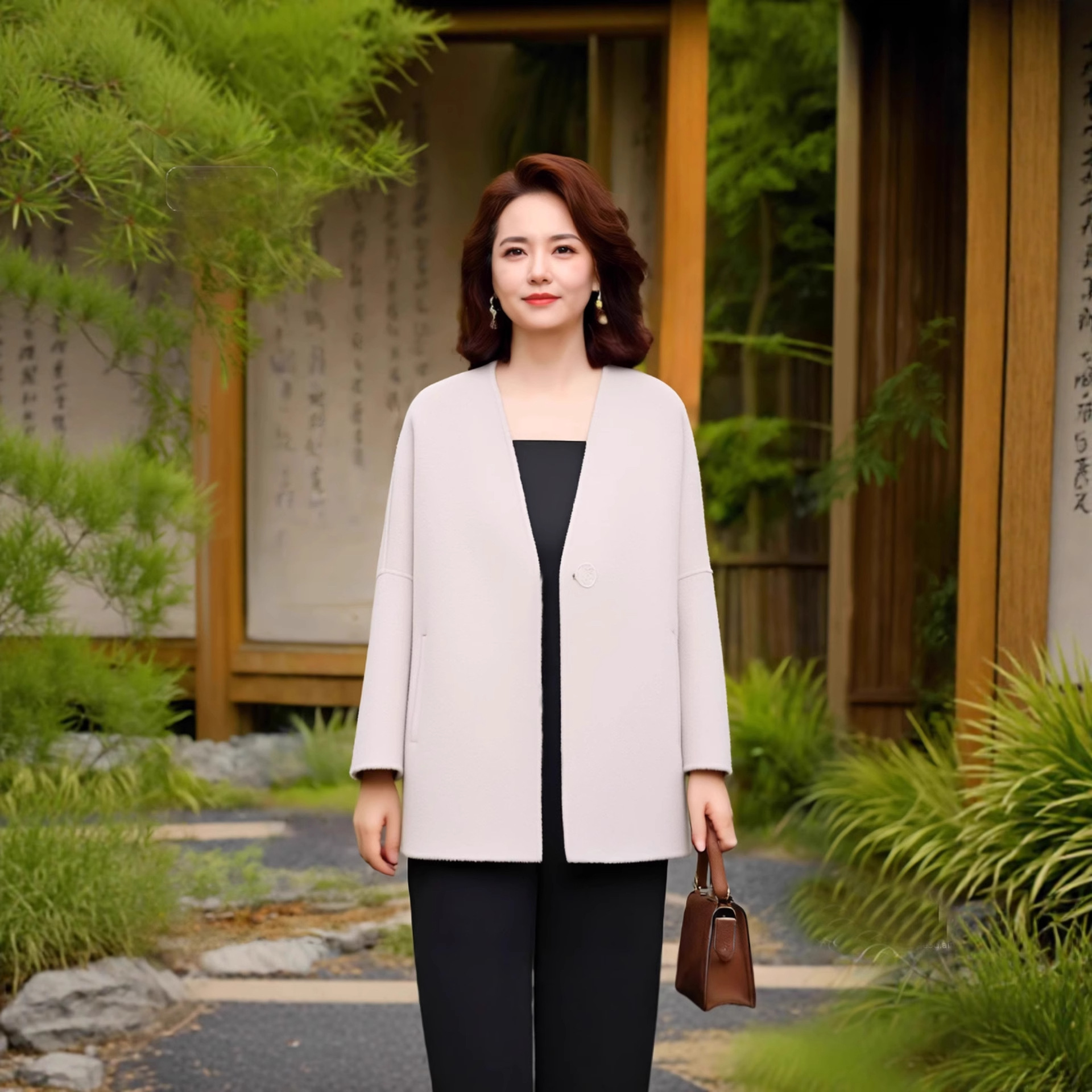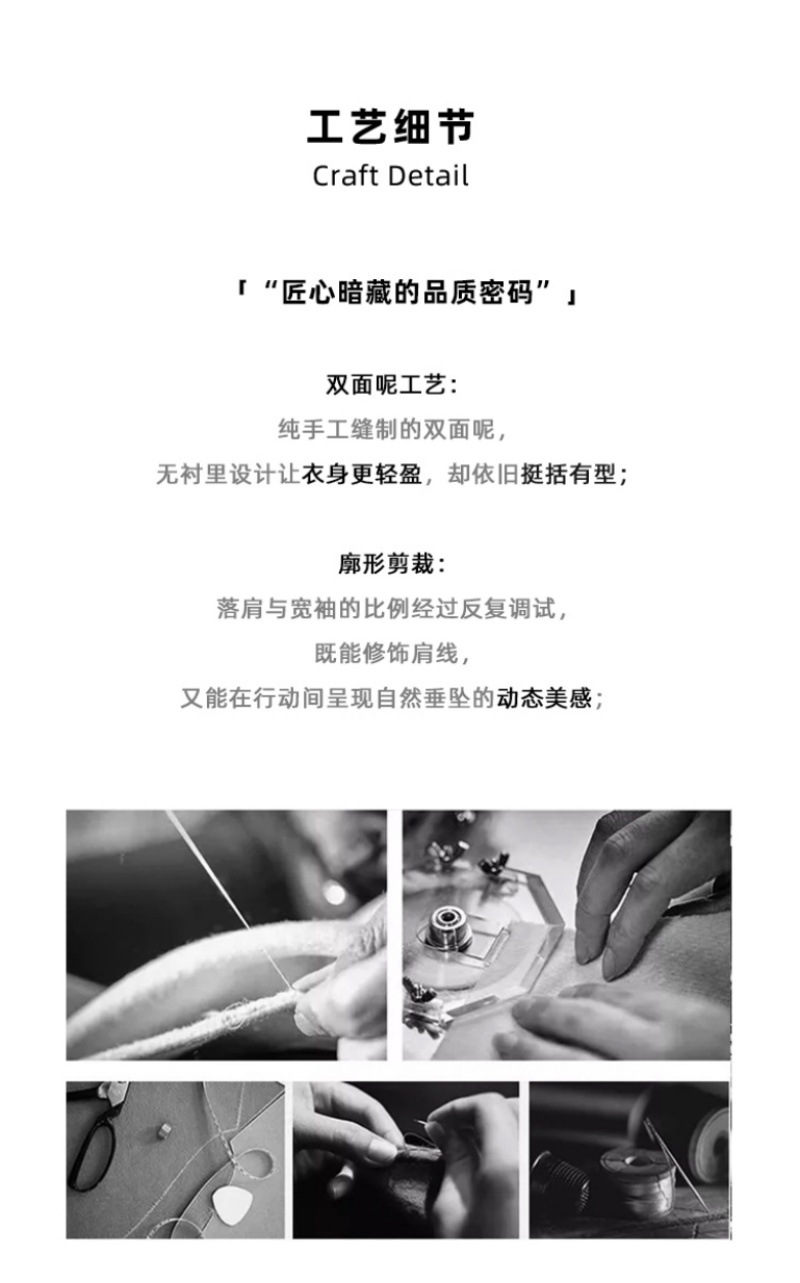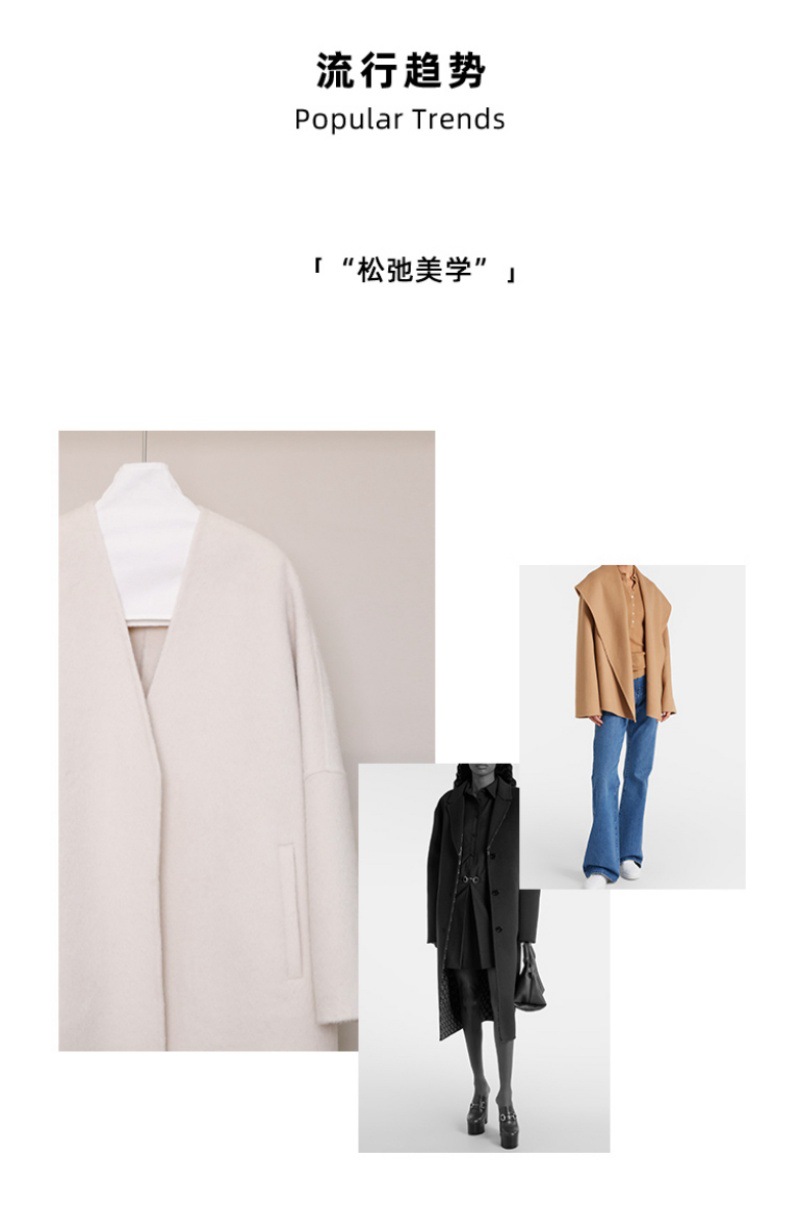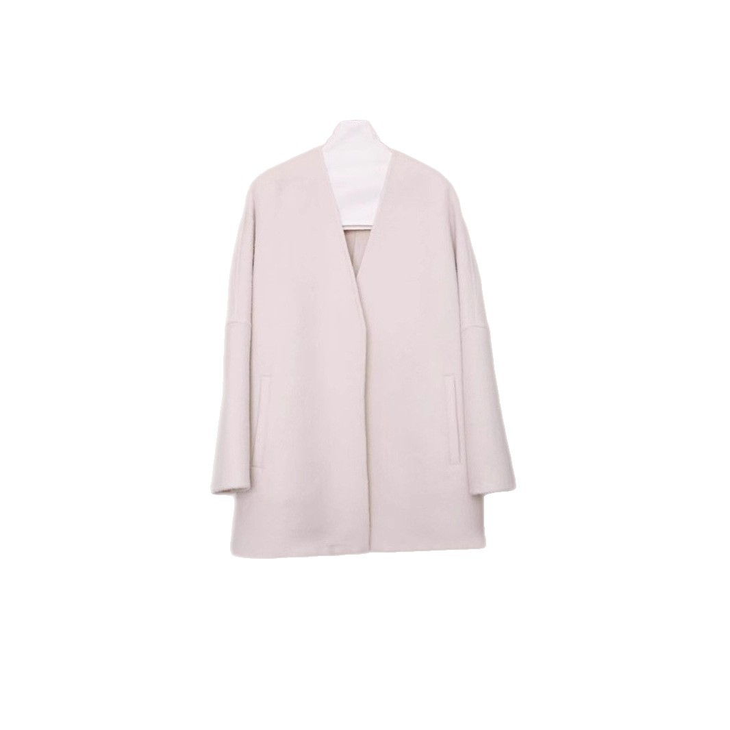 商品名称:英皇贝贝黄金品类高档奢级气质现代极简V领拼袖高档羊驼毛双面呢