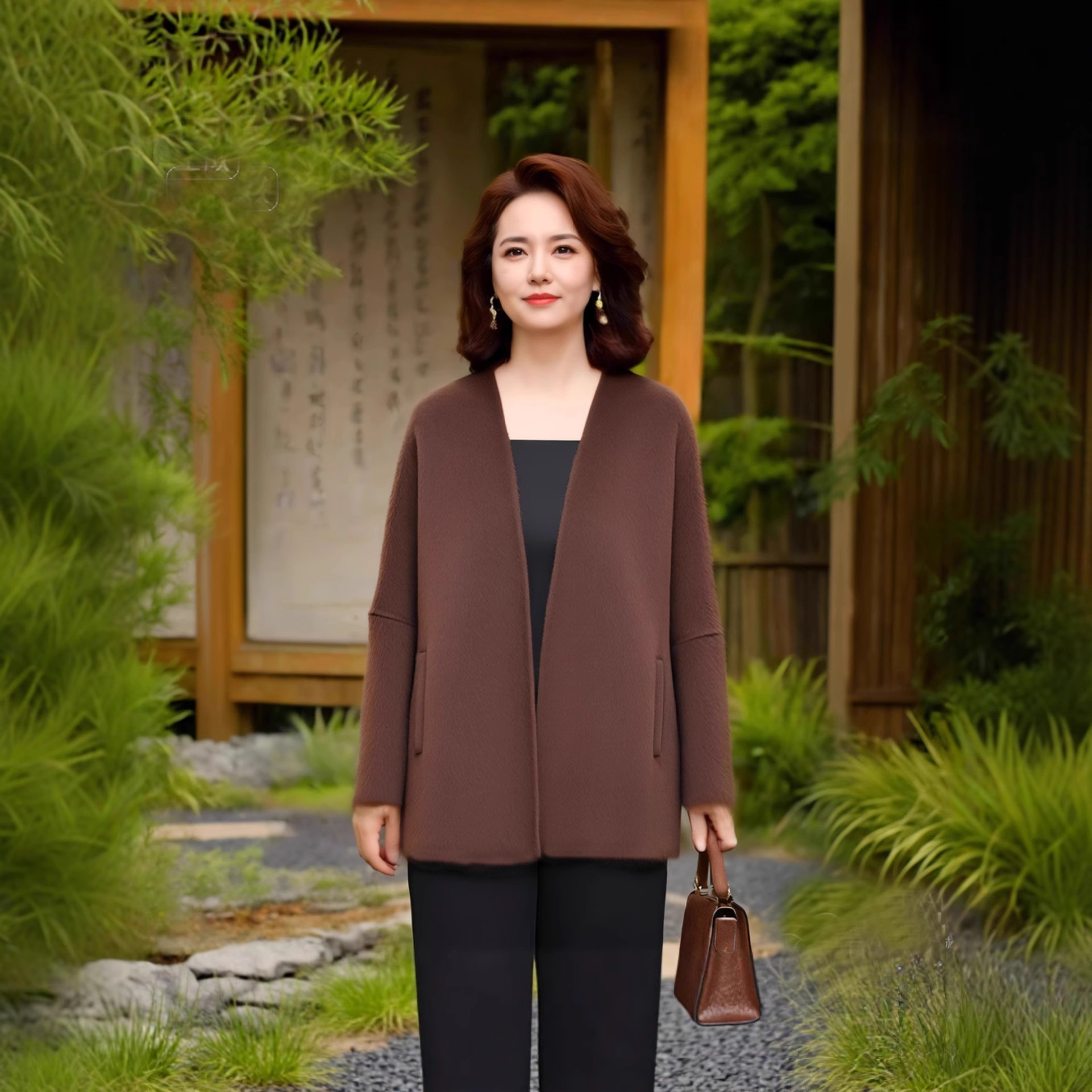 英皇贝贝黄金品类高档奢级气质现代极简V领拼袖高档羊驼毛双面呢