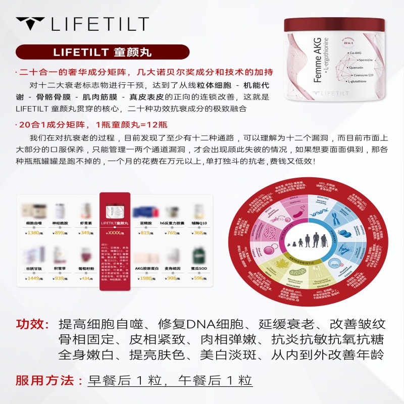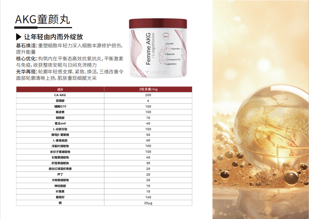 匈牙利LIFETILT原装进口提升细胞活力辅酶高端女性抗衰AKG童颜丸胶囊
