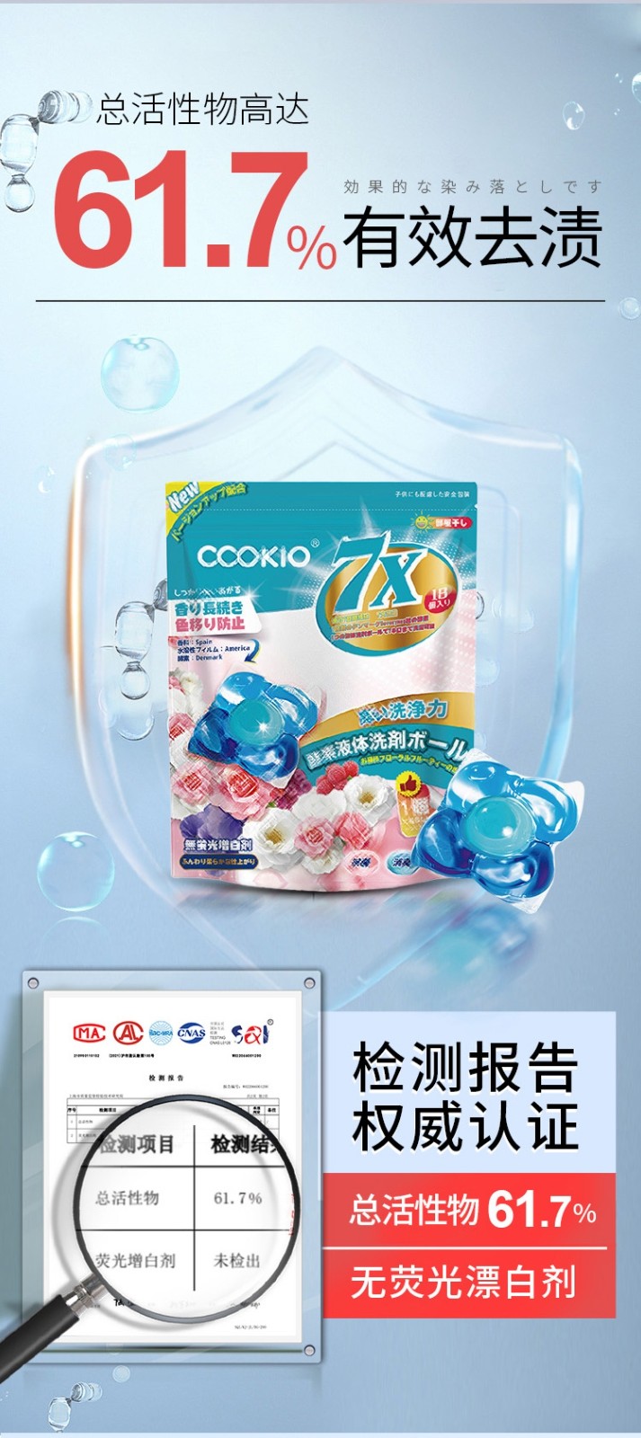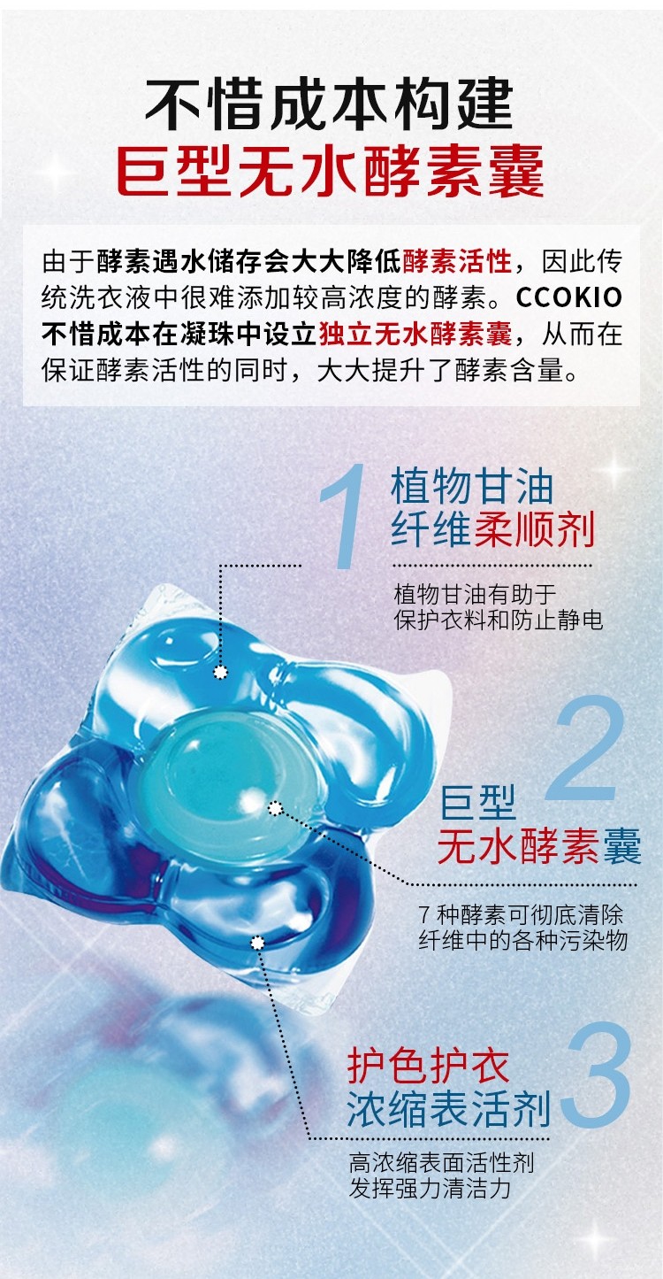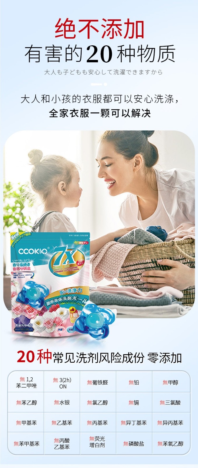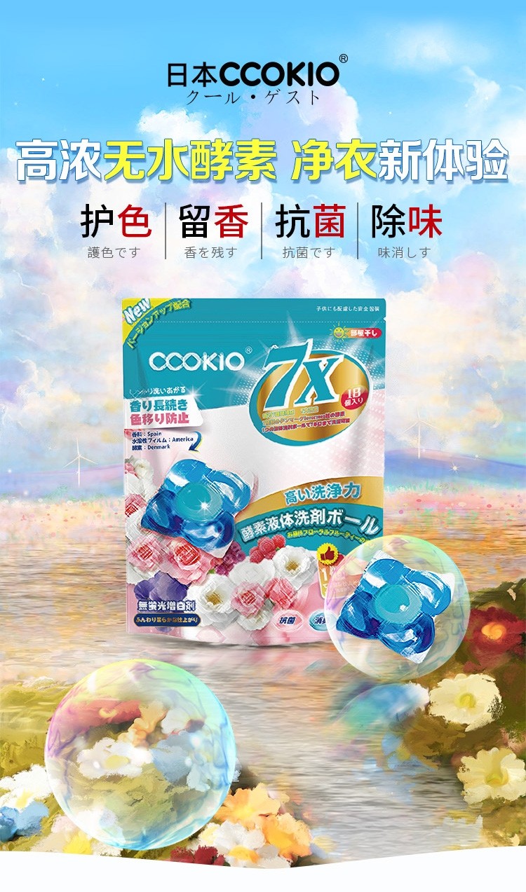 商品名称:酷优客珠留香珠三合一柔顺护色酵素洗衣凝珠(阳光花果香)18颗