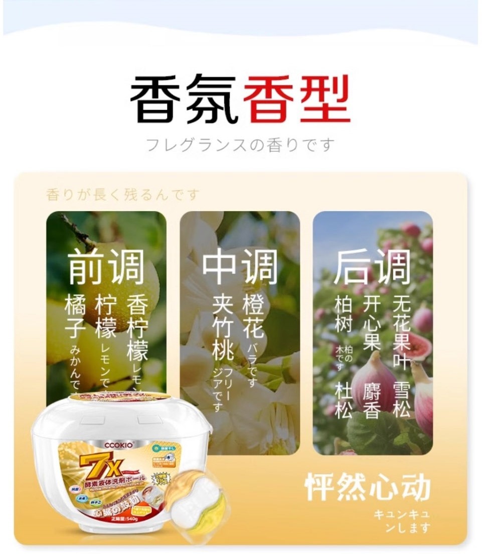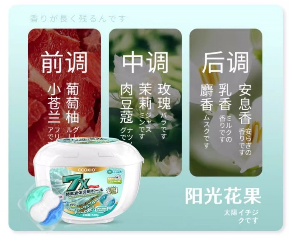 商品名称:酷优客三合一浓缩酵素持久留香酵素洗衣凝珠 (恬静幽香) 30颗