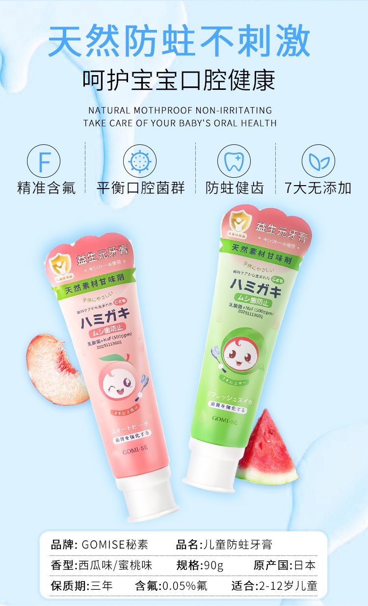 商品名称:日本原装进口秘素微氟配方强化牙釉质预防龋齿宝宝防蛀牙膏