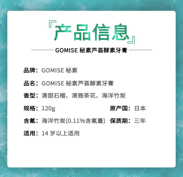 【GOMISE秘素】是日本专注于乳酸菌口腔护理的品牌,它倡导“平衡口腔菌落,维护人体健康”理念。产品在全国各大商场畅销。