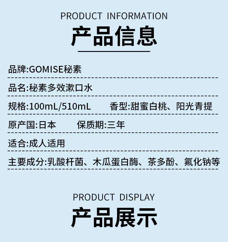 【GOMISE秘素】是日本专注于乳酸菌口腔护理的品牌,它倡导“平衡口腔菌落,维护人体健康”理念。产品在全国各大商场畅销。