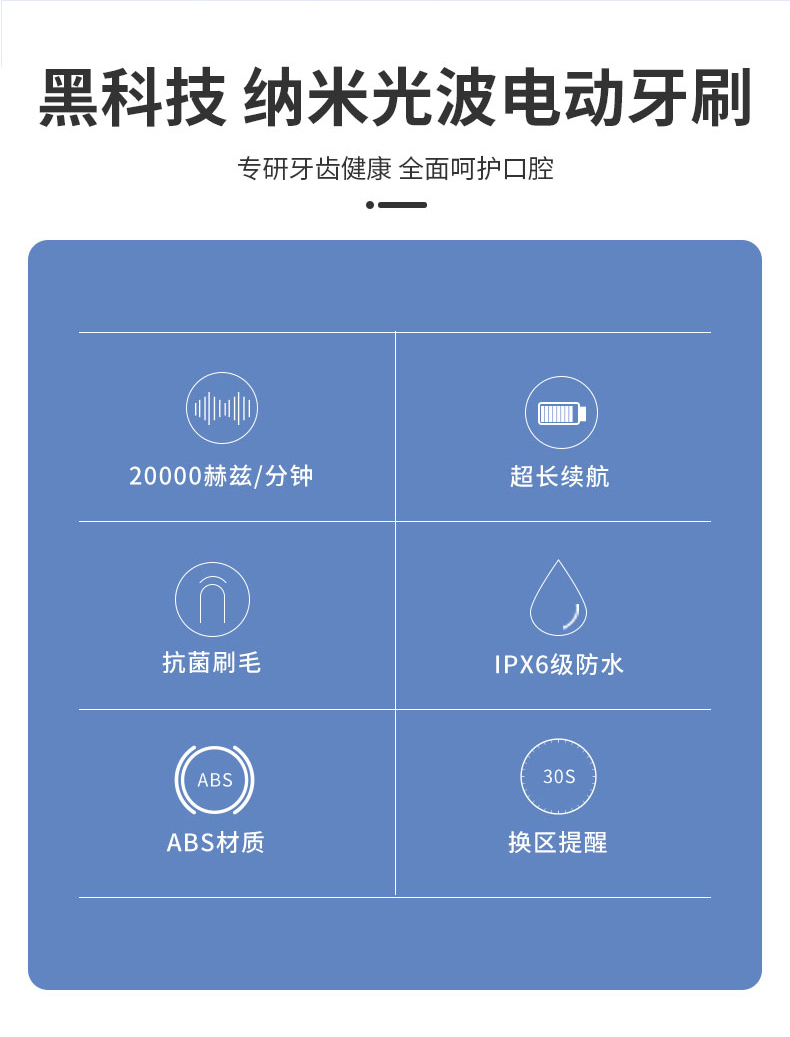 商品名称:日本原装纳米蓝光+635纳米红光 智能定时换区提醒纳米牙刷