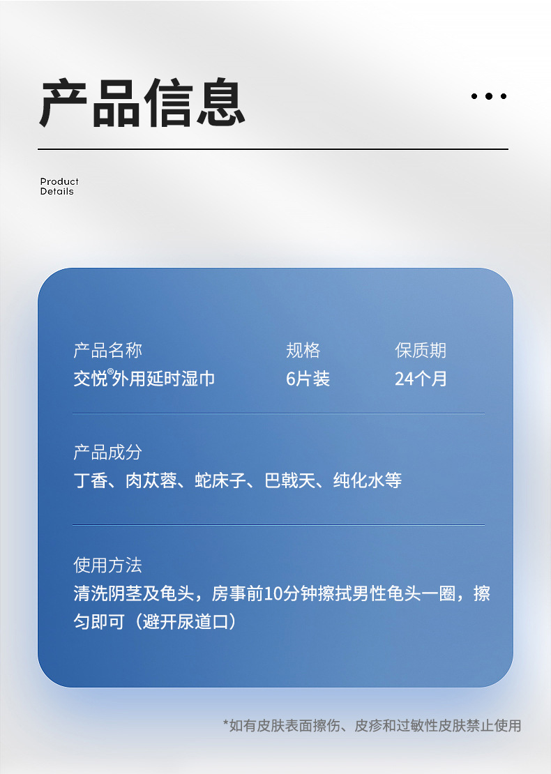 产品名称:交悦体验版延时湿巾
