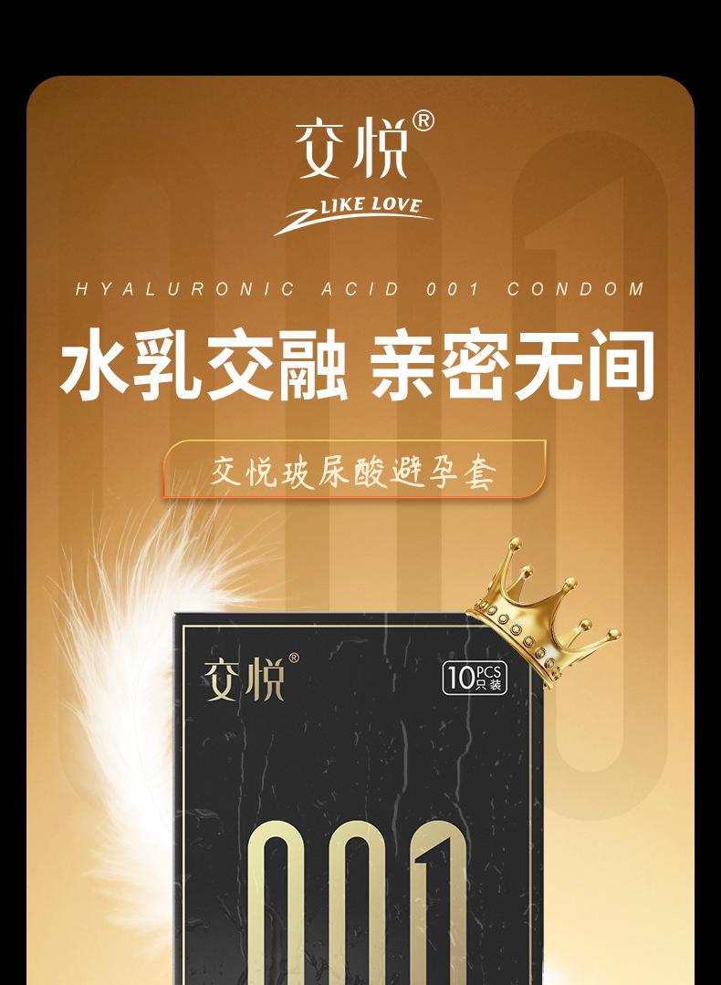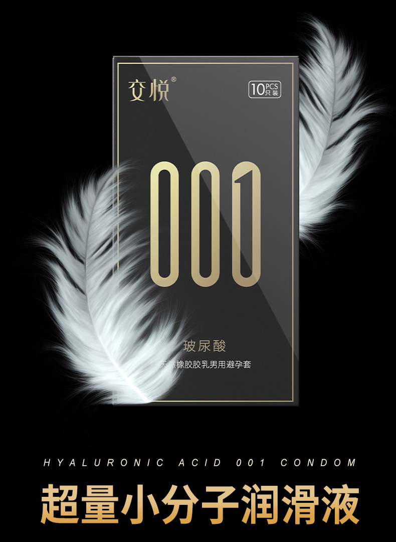 交悦计生用品玻尿酸避孕套10只装光面超薄水溶性安全套成人用品