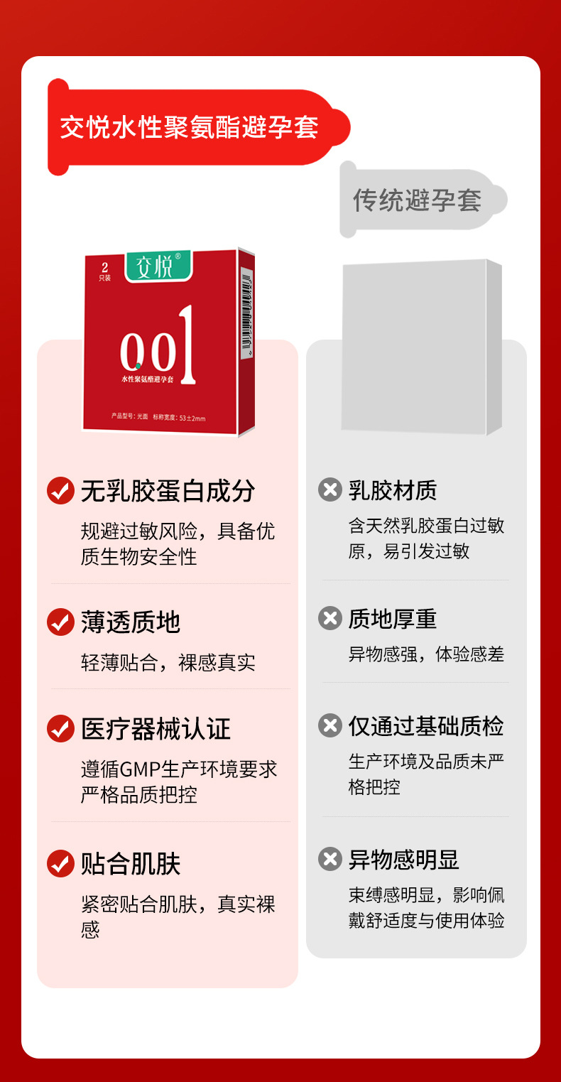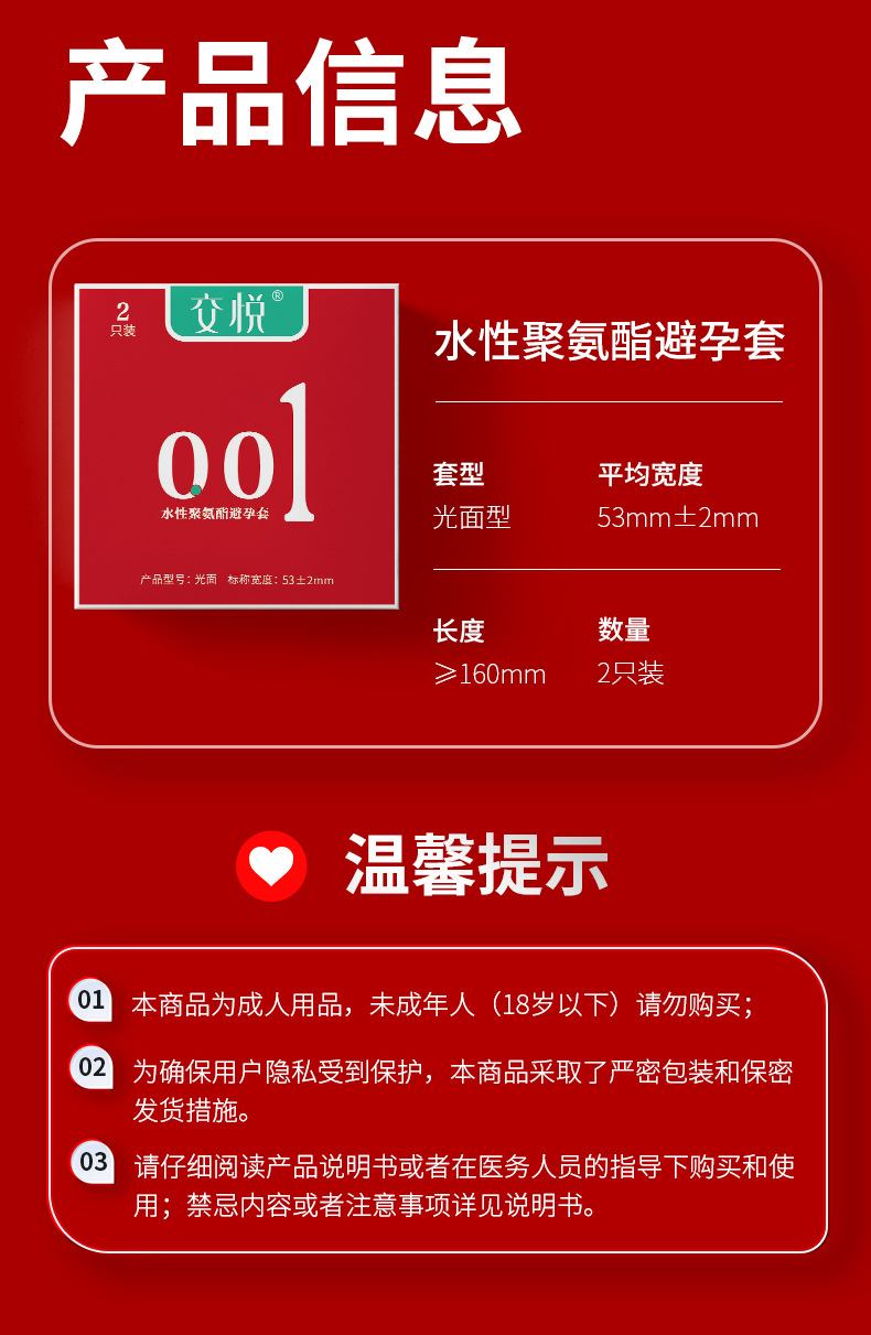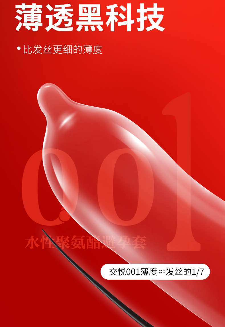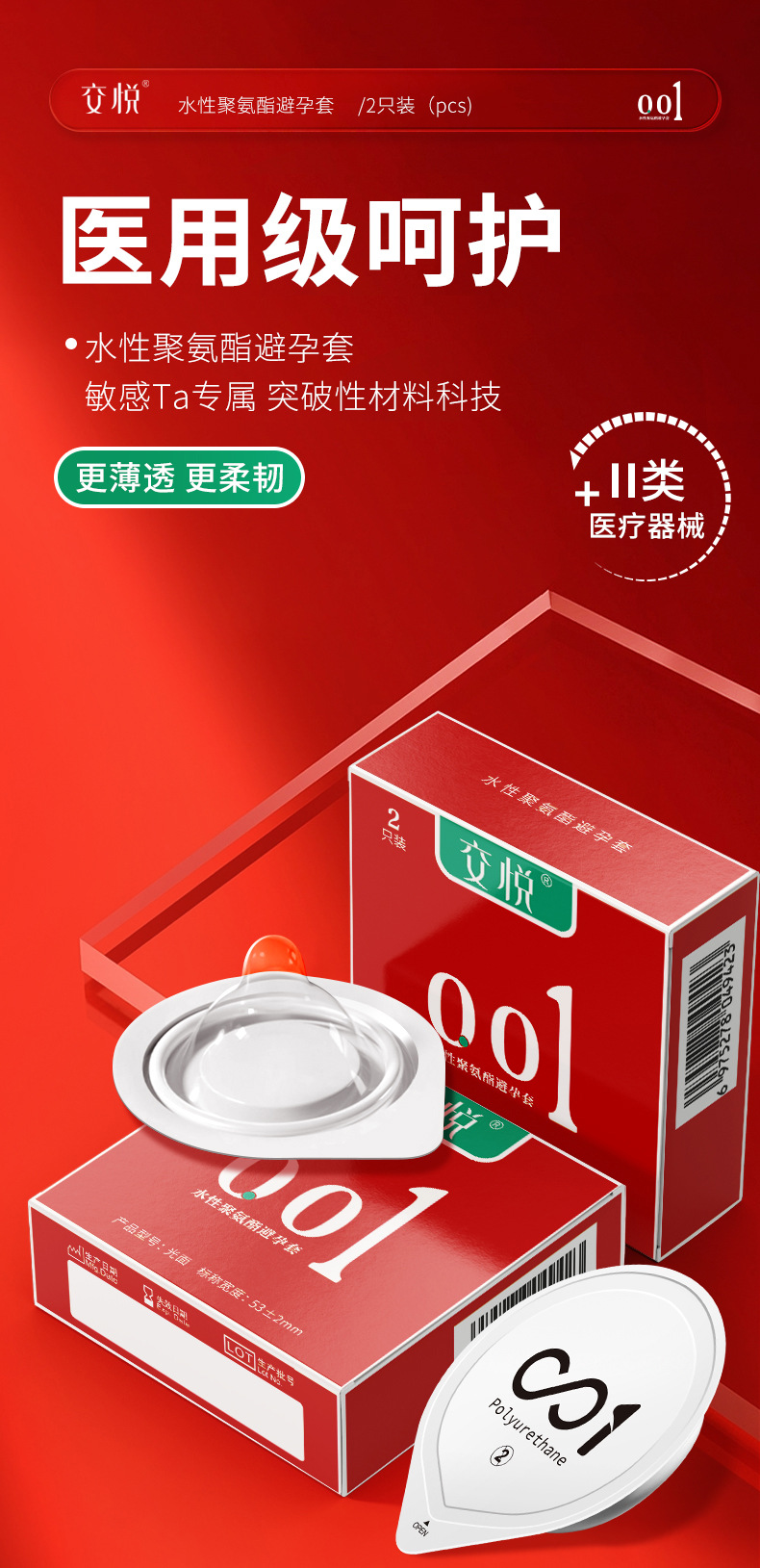 商品名称:交悦聚氨酯001超薄避孕套情趣安全套潮润玻尿酸计生用品2只装