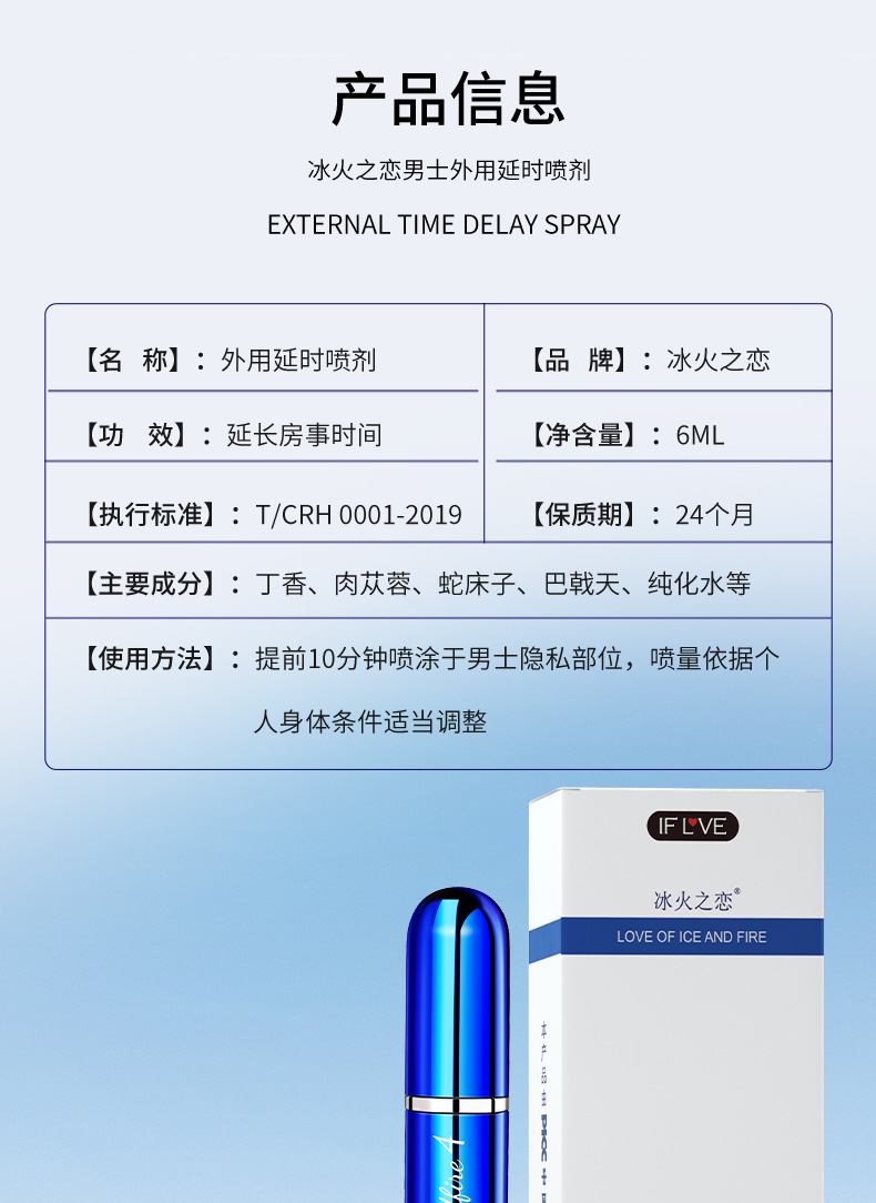 商品名称:交悦冰火之恋男外用延时喷剂成人房事持久不麻情趣调情玩具性用品